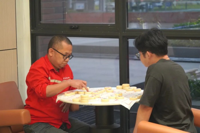 运动场下的比拼同样精彩纷呈,台球、象棋、电子竞技的赛场正上演着无声博弈的“头脑运动”。象棋区内,选手们凝神静气,运筹帷幄,在方寸棋盘间展开无声的智力对决;桌球选手们正沉稳出杆,他们凝神计算角度与力度,每一次精准的击球和走位,都赢得场内阵阵低语赞叹;而在电子竞技区,则是另一番热血景象,团队之间配合默契,战术执行果断,实时策略与精准操作相辅相成,展现了新兴竞技项目的独特风采。