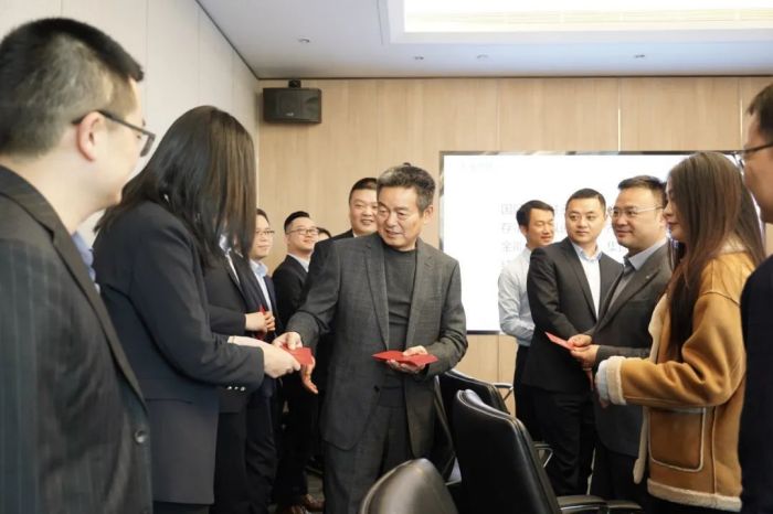 开工第一天,中伟人或在工位上忙碌,或已经投身到开年冲刺的筹备会议中。邓光明亲切地来到一间间办公室、会议室,将开工红包与新年祝福带给每一位中伟人,勉励大家新的一年奋勇争先、创造佳绩。开门红包给新年的工作增添了好彩头,大家喜笑颜开、“龙”光焕发,办公室里洋溢着喜庆的氛围。