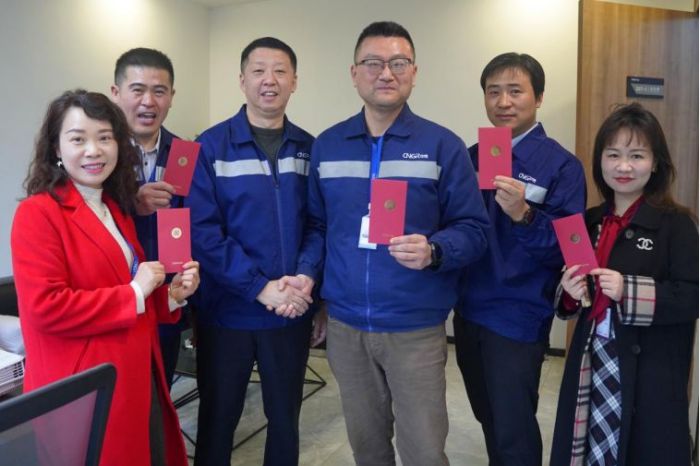 金龙迎新,开工大吉!正月初九,中伟股份各中心、各基地、各部门喜迎龙年开工第一天!一个个寓意着新年美好祝福的开工红包发放到了每一位员工手中,预示着新的一年红红火火,万事兴“龙”!