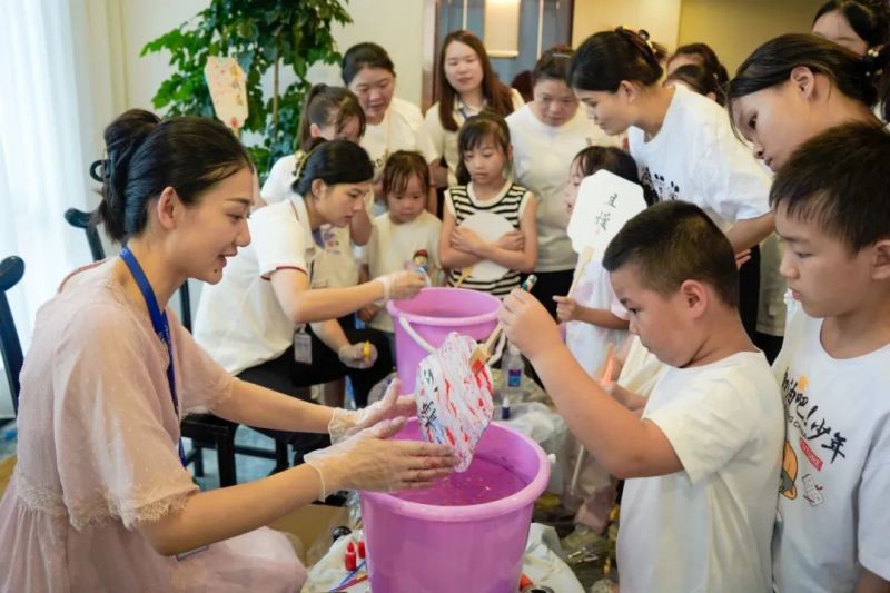 在宁乡,为小朋友设置了“探索之旅”现场互动答题环节,小朋友们纷纷举手抢答,赢得锂电宝宝盲盒奖品,同时还为小朋友和家长们设置了非遗手工漆扇、趣味投壶、套圈圈等游戏,让小朋友在游戏中收获知识,快乐成长。