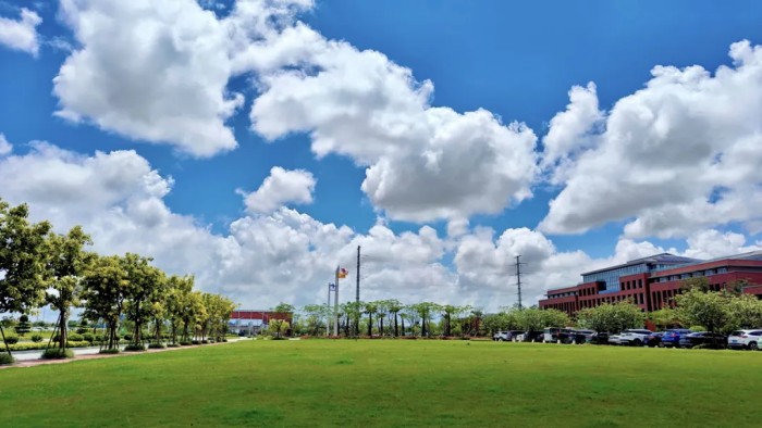 春雨连绵的3月迎来难得放晴的一天,我在园区看到这样的画面——中伟司旗与多国国旗在蓝天白云下迎风飘扬,让我感受到中伟国际化进程中的开放与融合。于是我拿出手机拍下这张照片,心中祝愿中伟早日成为全球领先的新能源材料科学公司。