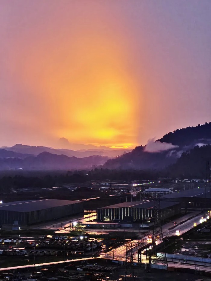 2月是印尼北莫罗瓦利的雨季,一个大雨后的傍晚,我在巡检至园区电厂时眺望冰镍厂方向,余晖如金色纱幔,轻柔地披在远处的山峦之上。山脚下的北莫罗瓦利基地厂房和道路洒满了金辉,仿佛工业与自然的和鸣。我内心满是对这奇妙融合之景的震撼与沉醉,于是按下快门,定格这一瞬工业与自然交织的诗意时刻,记录这份工作日常中的美。