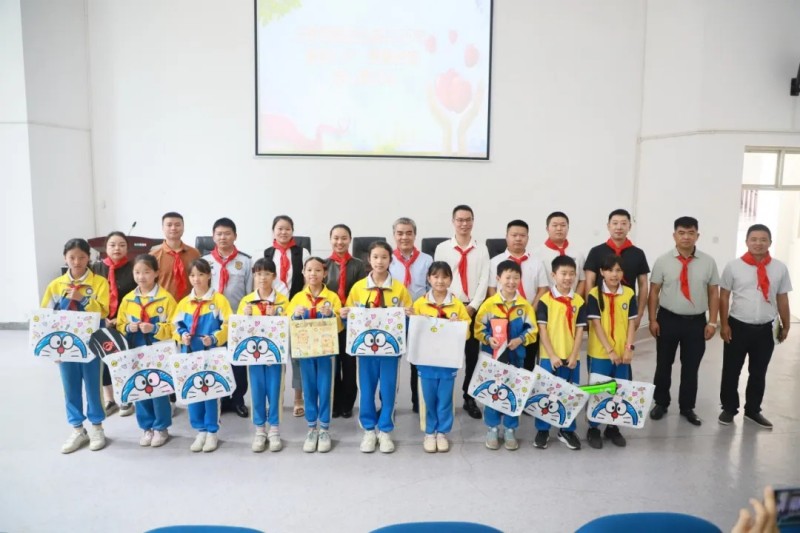 仪式现场,红领巾与节日氛围相映成趣。贺启中代表公司向全体师生送上节日祝福,祝孩子们六一快乐、学习进步,并向辛勤的老师们致以崇高敬意。他表示,这些六一礼物承载着爱与关怀,希望能为孩子们送上节日的温暖与惊喜。贺启中还热情地向在座学生发出邀请:“每年8月,欢迎你们来中伟科技馆参加‘新能源探索之旅’活动,一起体验创新魅力,让科学的种子在心中生根发芽!”
