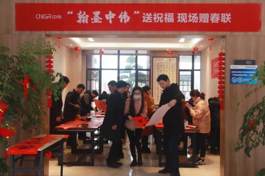 当日下午,来自长沙、宁乡市书法家协会的书法家们受邀前来中伟,书写出一幅幅春联,把浓浓的年味儿和祝福赠予全体中伟人。大师们挥毫弄墨,大显身手,将一张张鲜红的正丹纸,侵染上墨香。“这字写得真好啊!”大家纷纷感叹,手写的春联让中伟的年味更浓了!