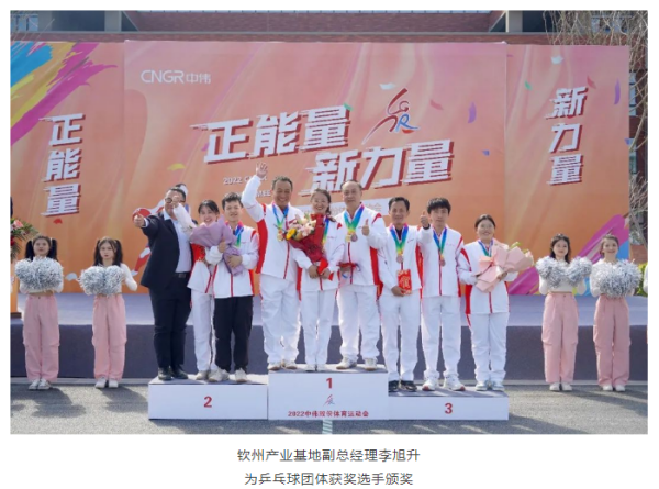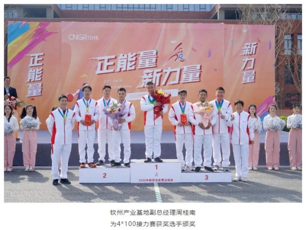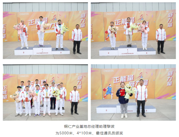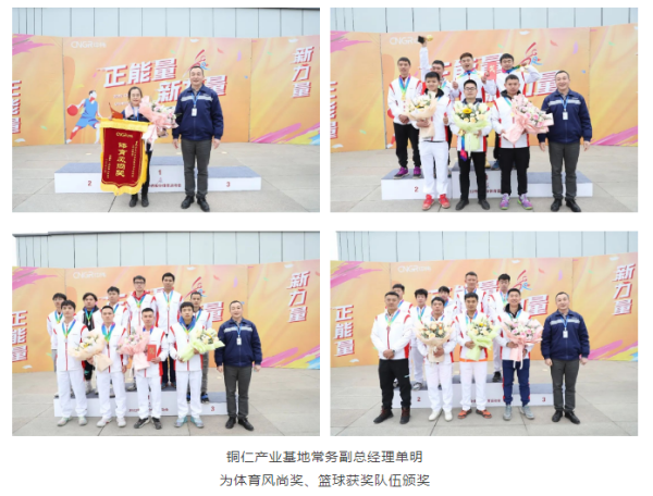 颁奖仪式结束后,单明代表铜仁产业基地向获奖的运动健儿们表示热烈的祝贺!他表示:“在本届运动会中,所有参赛选手赛出了友谊,赛出了团结,赛出了中伟人的气度和胸怀,充分展现了中伟人的拼搏精神和团队作战能力。希望本届运动会闭幕不落幕,中伟人拼搏不停歇,将体育运动中的奋斗精神和团队作战能力应用到工作中,为加快打造全球最具价值的新能源材料综合服务商作出新的更大贡献。